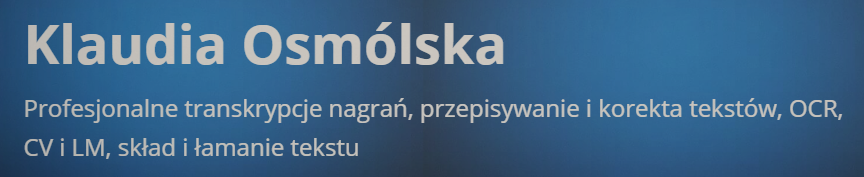 Dlatego proponuję oddelegować przynajmniej część rzeczy związanych z produkcją podcastu. Ja obecnie korzystam z usług Klaudii Osmólskiej, która zajmuje się profesjonalną transkrypcją moich nagrań.